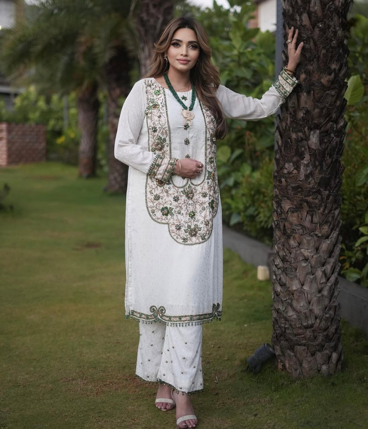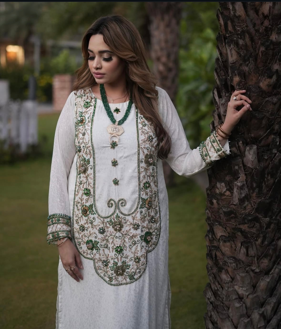 Elevate your wardrobe with this elegant white dress adorned with intricate gold detailing. Designed to blend classic charm with modern sophistication, it offers a graceful silhouette perfect for special occasions. The subtle gold accents enhance its refined appeal, making it a timeless choice for those who appreciate understated luxury.